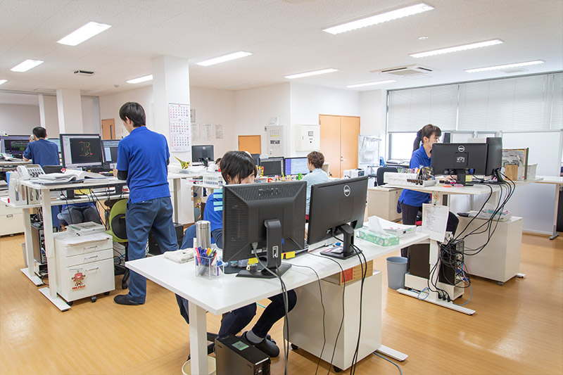 受注から製品製作・納品に至る本社から工場への指示は 全工程をコンピュータ管理し、ロスやミスの徹底した排除を行っています。