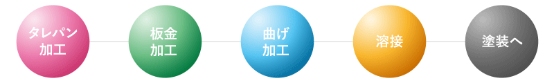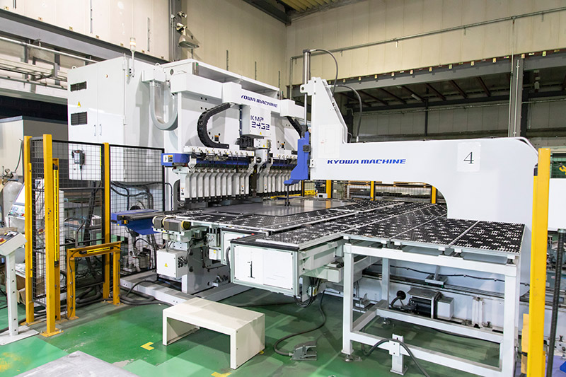 タレパン加工や曲げ加工など特殊処理加工機材の導入と、緻密な手作業の融合により完璧な製品が形づくられる。
